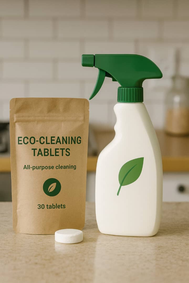 Onze eco-vriendelijke reinigingstabletten bieden dezelfde krachtige werking als traditionele schoonmaakmiddelen, maar zonder plastic verspilling. Voeg gewoon water toe, schud en je hebt een effectieve spray die veilig is voor je huis én het milieu.